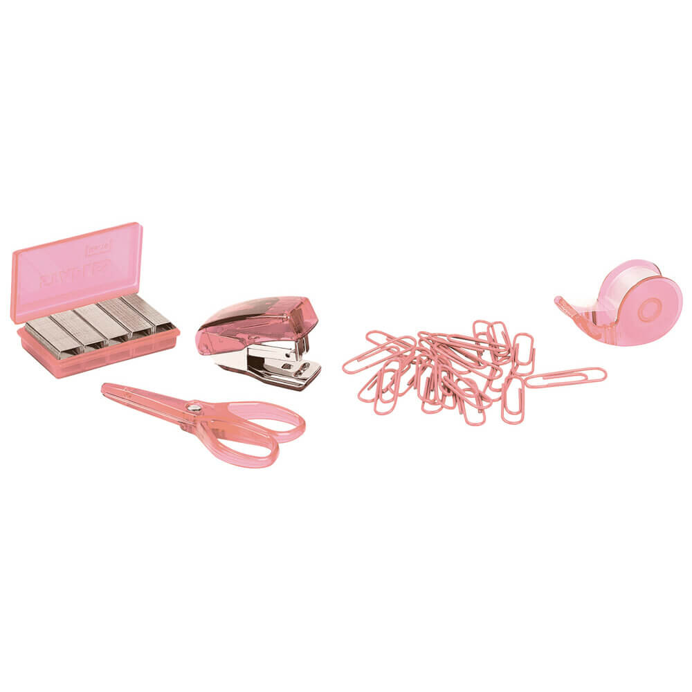 Surtido 4 modelos. Incluye: clips para papel, tijeras, cinta adhesiva con portarollos, grapadora y grapas. Medida : 8,4 cm x 3 cm x 6 cm