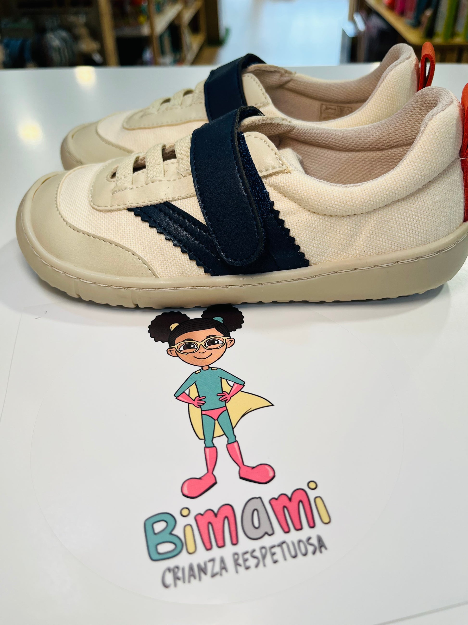 Plantilla anatómica, tela beige y refuerzo por la puntera en piel.