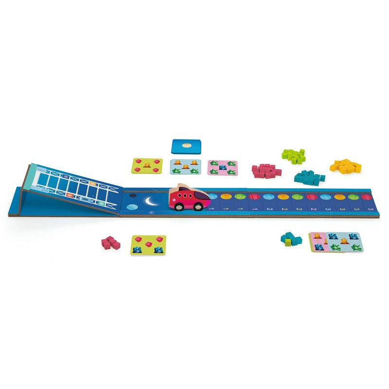 Un divertido juego de mesa para recolectar los diferentes colores dependiendo del planeta donde aterrice el cohete.