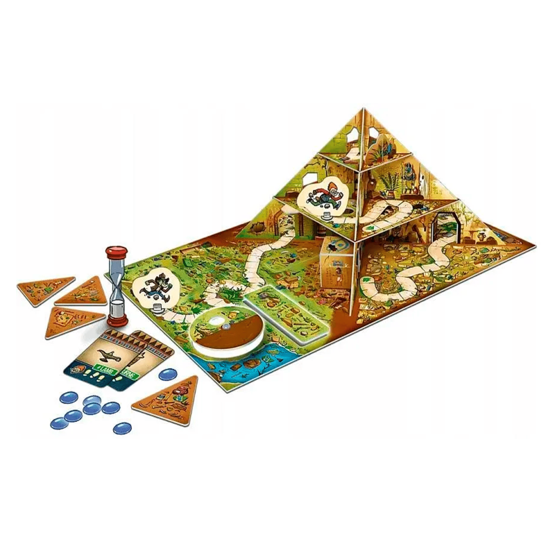 Spy Guy Pirámide es un juego de observación en el que exploras una pirámide muy antigua. Durante el juego os desplazaréis por un gran tablero en 3D para poder descubrir pistas ocultas. Sin embargo, a medida que descubráis algunas de ellas, ocultarás otras. ¡Esto hará que el desafío sea mucho más exigente!